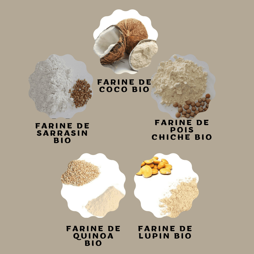 Des farines issues de l'agriculture biologique qui ne contiennent pas de gluten et sans céréales qui ont des indices glycémiques bas, ce qui favorise une digestion optimale.