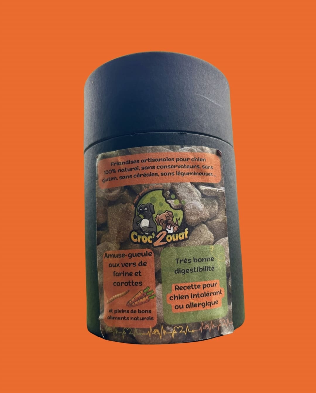 Biscuits pour chiens 100% artisanaux et naturels avec des Vers de farine et carottes fraîches .